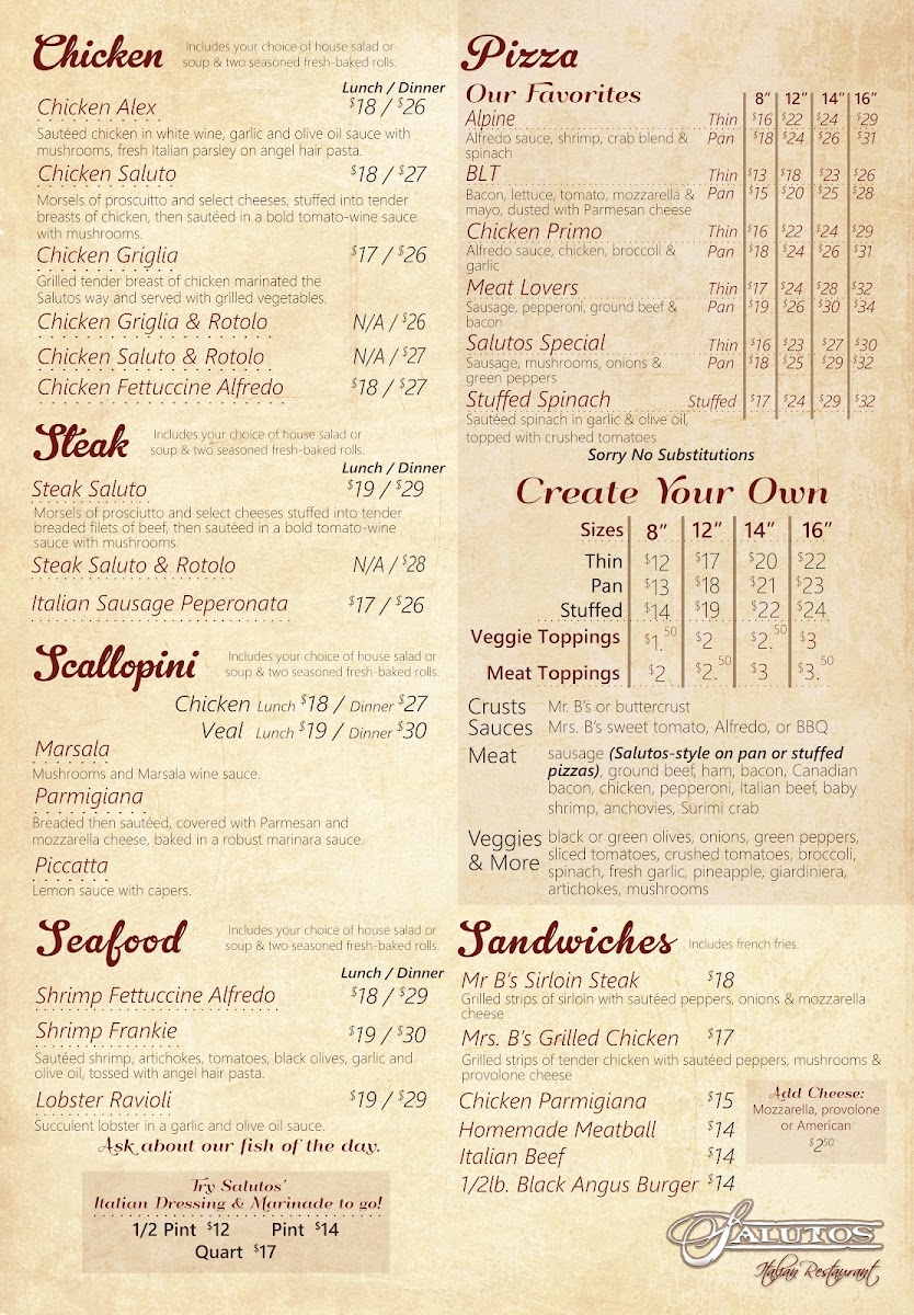 Grilled strips of chicken breast and provolone cheese over Salutos' famous house salad